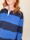 VERY SOFT, FADED RALPH LAUREN STRIPED STRIPED RUGBY SHIRT. THIS PIECE HAS A SUPER SOFT FLEECE FINISH ON THE INSIDE.
